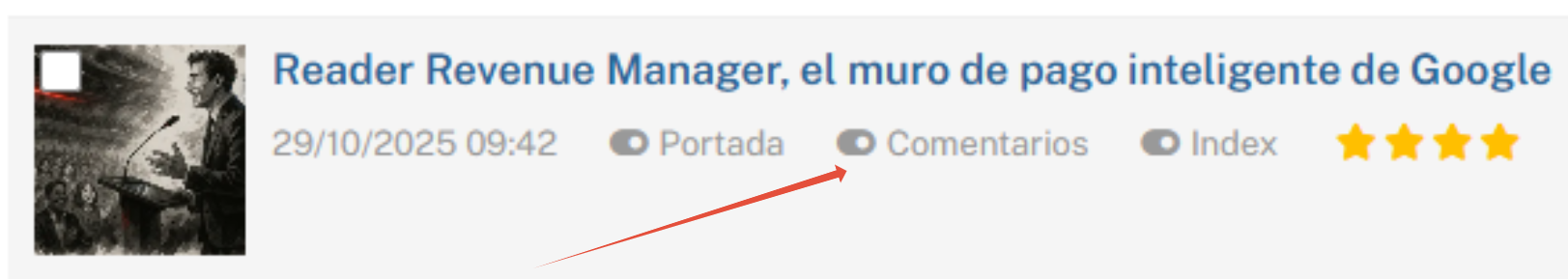 - Localiza el artículo para el cual deseas activar o desactivar los comentarios.