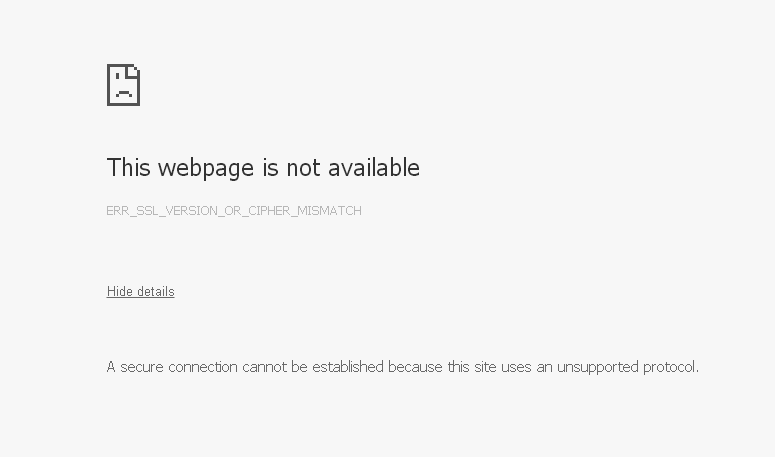 Este error ocurre cuando el navegador y el servidor no logran establecer una conexión segura debido a una incompatibilidad en los protocolos de cifrado.