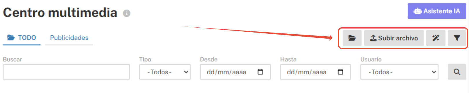 El Centro Multimedia es un espacio donde encontrarás todos los recursos multimedia que se hayan subido a tu sitio tanto por tu parte como la de tus usuarios colaboradores. Cada vez que un usuario suba o cargue una imagen, video, audio o archivo al sitio, éste quedará guardado en el Centro Multimedia para su registro y posterior utilización.