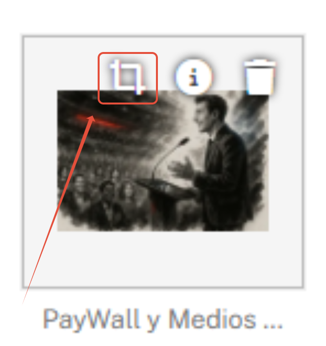 Utiliza el botón de recorte para ingresar al modo de edición de una imagen. En el modo edición podrás aplicar marcas de agua, filtros, recortes, anotaciones y más. Consulta este artículo para más detalles: Editor de imágenes