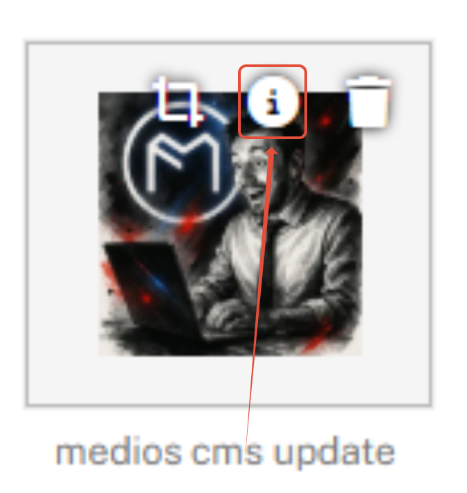 Haz clic sobre el icono de más información para modificar el atributo ALT de la imagen y para obtener más detalles sobre las dimensiones, peso y enlaces.