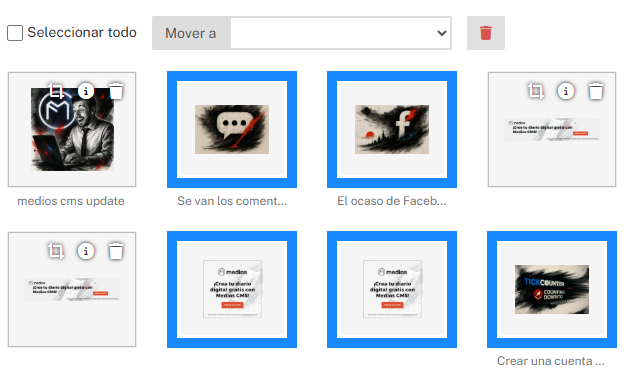 Al eliminar un archivo del Centro Multimedia, éste se eliminará por completo del sitio y, en consecuencia, dejará de estar disponible en todos los contenidos de tu sitio donde se haya utilizado (artículos, galerías, videos y demás). Ten en cuenta que los usuarios con permisos de Administración Multimedia podrán realizar este tipo de acciones sin mayores controles