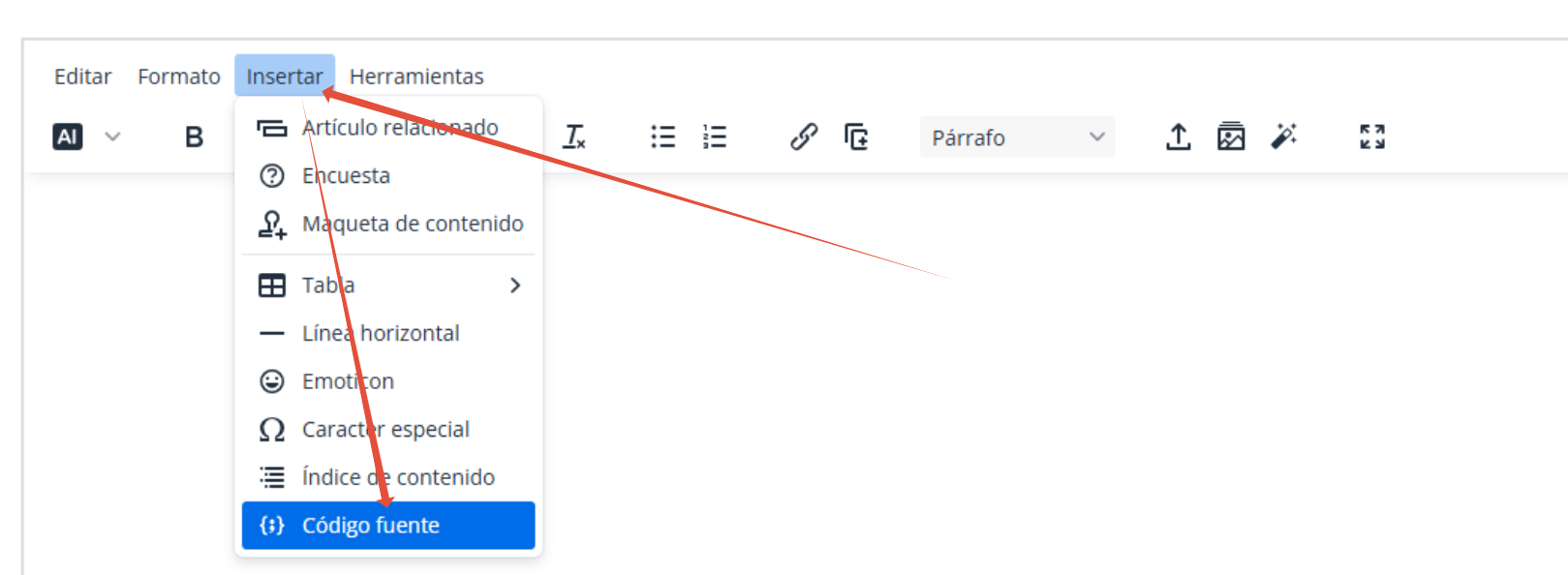 Dependiendo de dónde quieras que aparezca, tienes tres opciones:En el Inicio o Laterales: Ve a Contenido > Maqueta de Bloques HTML, crea uno nuevo, activa el icono de Código Fuente