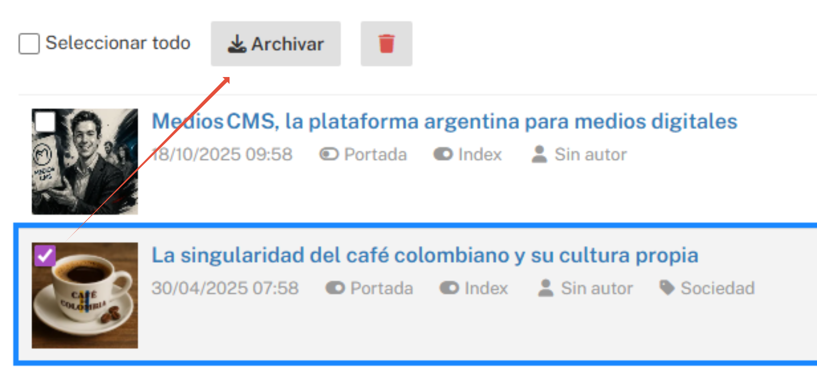 Consultar o restaurar: Dentro de la administración de Artículos ve a la pestaña Archivados.